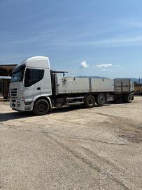 Stralis 450 e5, gommato di recente, sostituzione pastiglie freni completo, cambio dischi freno anteriore trazione e primo asse rimorchio, sostituzione olio cambio e differenziale a km 990000, cambio olio motore e filtri due volte anno, cassone bilaterale, cambiati turbina alla romana diesel a 1000000 di km, aria condizionata perfetta con nuovo radiatore, veicolo in ottime condizioni, appena revisionato. Il prezzo è più iva.