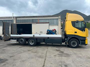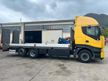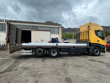 AUTOCARRO IVECO STRALIS CUBE AD260S42 (COD.INT. PM2071) DESCRIZIONE - Autocarro in ottime condizioni generali, in allestimento con pianale con rampe di carico nuovo metri 7,80, 3 assi, 6x2*4, cambio automatico, Euro 5EEV, sospensioni full pneumatiche, clima, ABS, EBS, ESP, terzo asse sterzante, retarder POSSIBILITA' DI FINANZIAMENTO Motore - IVECO Km - 390.000 Anno - 2012 Cilindrata - 10.300 cm³ Potenza netta - 420 cv - 309 kW Passo - 4800+1395 Portata a Pieno Carico - 260 q.li Prezzo : Euro 42.000,00 + IVA