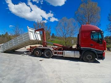 Vendo iveco Stralis 480cv tre assi con scarrabile immatricolato macchina operatrice PATENTE B. passo 4200 può agganciare casse da 5 a 7 metri. sospensioni pneumatiche terzo asse intelligente cambio MANUALE retarder complessivo 260ql più rimorchiabile campana di traino omologata 180 quintali anno 2006 tagliando completo appena fatto soffioni nuovi perni fusi fatti ottime condizioni interne ed esterne cassa Non compresa No bollo No revisione assicurazione ridotta.