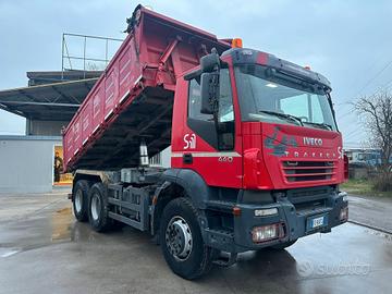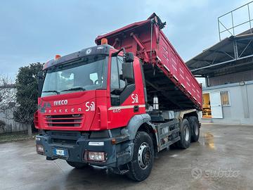 Iveco Trakker 44, 3 assi ribaltabile, 6x4, mezzo d'opera, anno 2006, euro 3, km 550.000, cambio manuale, cassone ribaltabile trilaterale con sponde idrauliche, telo copri scopri, gommato 80%, ganci per il traino, in perfette condizioni.