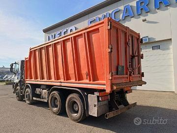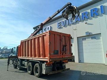 Verniciatura - bianco Esteriore - Molla a balestra Trasmissioni automobilistica - Cambio automatico Altro optional - retarder Vasca ribaltabile posteriore mt. 6,60x2,50 con porte post Gru caricatrice Palfinger portata max. 5090kg sbraccio 8,30mt polipo caricatore Minelli MPS300R16 In ADR classi FL At Ox Ex/II Ex/III