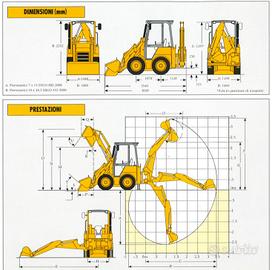 Vendesi terna JCB 1 CX, motore Perkins 104-22, 4 tempi, cilindrata 2216 cm3, potenza massima kW 37,5, completa di retroescavatore, impianto fresa martellone. Peso 2.950 Kg. Dotata di libretto di circolazione e Certificato CE.