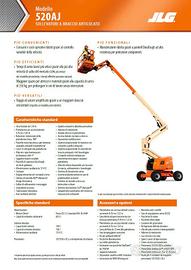 JLG 520AJ (2015) | 3.000 ore | €24.300 + IVA La JLG 520AJ è una delle piattaforme aeree articolate più apprezzate per affidabilità, precisione e capacità di lavoro in quota. Questo esemplare del 2015, con sole 3.000 ore, è in eccellenti condizioni e rappresenta una soluzione ideale per aziende che cercano una macchina pronta all'uso, sicura e performante. Caratteristiche tecniche principali * Altezza di lavoro: circa 18 m * Sbraccio orizzontale: ampio, ideale per raggiungere punti difficili * Motore efficiente con consumi ridotti * Comandi proporzionali per movimenti fluidi e precisi * Struttura robusta e ottima stabilità anche in condizioni operative impegnative * Cestello spazioso per due operatori e attrezzatura * Documentazione completa disponibile Stato della macchina * Ore reali: 3.000 * Anno: 2015 * Condizioni meccaniche: ottime, sempre manutenuta * Condizioni estetiche: molto buone * Nessun intervento urgente richiesto * Pronta per lavorare immediatamente Perché scegliere questa JLG 520AJ * Perfetta per cantieri edili, manutenzioni industriali, impiantistica, potature e lavori in quota di ogni tipo * Marchio leader nel settore, con ricambi facilmente reperibili * Ottimo rapporto qualità/prezzo * Ideale sia per chi vuole ampliare la flotta sia per chi cerca una prima piattaforma affidabile Prezzo € 24.300 + IVA Prezzo trattabile dopo visione. Contatti e disponibilità Macchina visionabile su appuntamento. Siamo disponibili da lunedì a venerdì dalle 9.00 alle 12.30 e dalle 15.00 alle 18.00. Tel.