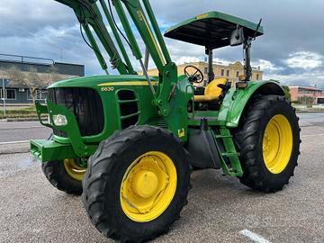 John Deere 6630 - 6 cilindri - 140 cavalli - cilindrata 6788 - anno 2010 - tara 58 q - velocità 40 km/h - con caricatore JD653 senza accessori - gomme posteriori misura 460/85R38 e anteriori misura 380/85R28- cambio meccanico 16+16 con inversore al volante -arco di protezione con tettuccio omologato- pronto per lavorare.