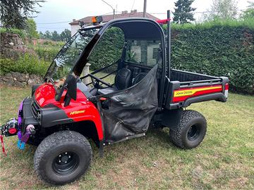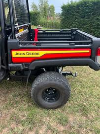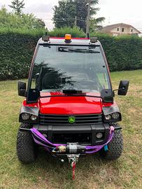 Riverniciatura completa di tutte le plastiche , con relativi aggrappanti dedicati , verniciatura cerchi , gruppo fari lavoro professionali , lucciola 12 V , trombe con compressore incorporato 12 V , verricello originale John Deere Made in USA che si può spostare anche nella parte posteriore , velocissimo + Telecom do per azionarlo , realizzazione cavalletto per carico su cassone , vetro anteriore apribile , gancio traino omologato davanti e dietro