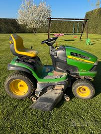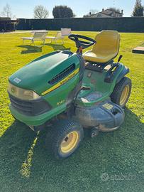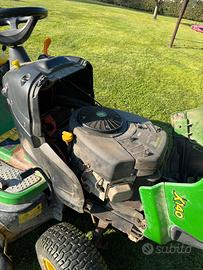 Vendo trattorino tagliaerba John Deere x140 motore Briggs &stratton bicilindrico da 22 CV benzina avviamento elettrico. Cinghia appena sostituita. Set di lame di ricambio