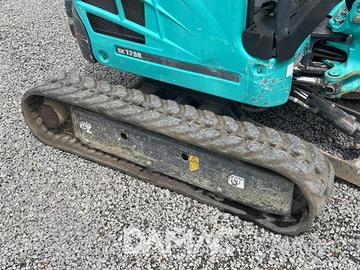 Miniescavatore Kobelco SK17SR-3E del 2021, 1.810 kg, girosagoma, carro variabile, cingoli in gomma, impianto martello idraulico, 2.564 ore di lavoro. Certificato CE, disponibile ad Anguillara Sabazia.