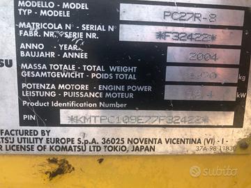 Vendiamo questo escavatore komatsu pc27.