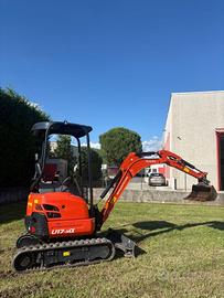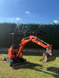 Vendo Miniescavatore KUBOTA U 17-3 A anno 2023 ore di lavoro 490, motore 3 cilindri raffreddato ad acqua,macchina con braccio lungo, carro allargabile, doppia velocità di traslazione,impianto martello doppio effetto. Peso 17.70ql.attacco rapido 2 benne.