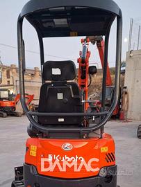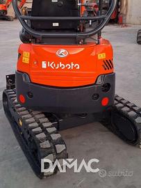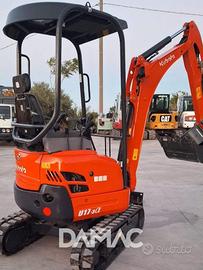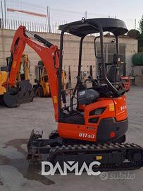 Miniescavatore KUBOTA U17-3a del 2017 con 2.000 ore di lavoro. Peso 1.650 kg, girosagoma, carro variabile, cingoli nuovi, lama anteriore e due benne Cangini in attacco rapido. Motore Kubota D902 da 11,8 kW.