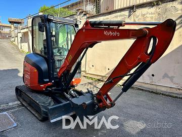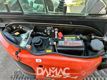 Miniescavatore Kubota U27-4 usato del 2017, 2.665 kg, 4.700 ore. Cabina chiusa, girosagoma e impianto martello. Completo di benna, certificato CE, disponibile a Roma.