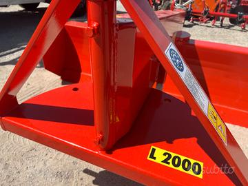 Robusta lama livellatrice a doppia rotazione da 2 m di larghezza, h 50 cm, sponde laterali smontabili.