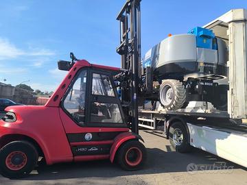 Vendo carrello elevatore marca Linde modello H 80 portata 8000 kg gomme piene gemellato altezza 5 m con posizionatori forche più traslato forche lunghe 2,20 m motore sei cilindri turbo eccezionale qualsiasi prova non esitate a venirlo a visionare nel nostro showroom in via Valcorrente numero 10, Belpasso vicino al centro commerciale Etnapolis, possibilità di finanziamento consegna in tutta Italia