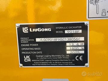 LIUGONG 9018F ANNO 2025 0 ORE CINGOLI ALLARGABILI ATTACCO RAPIDO CANGINI CON 3 BENNE DOPPIA VELOCITA MOTORE YANMAR 4 CILINDRI