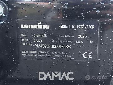 Miniescavatore Lonking CDM6025 26 quintali, nuovo 2025 con motore Yanmar, girosagoma, attacco rapido idraulico e 3 benne incluse. Disponibile in pronta consegna, Roma.
