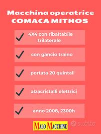 Macchina operatrice COMACA MITHOS 4X4 con ribaltabile trilaterale con gancio traino, portata 20 quintali. Motore buonissimo, freni nuovi, idroguida