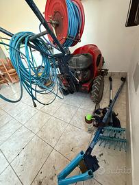 Compressore a tre doppie uscite, con abbacchiatori per raccolta olive, due aste estensibili più attrezzi per potatura ad aria, si muove nel terreno in autonomia, accensione elettronica Tubazioni molto lunghe per un lavoro agevole e veloce Documenti con caratteristiche disponibili Motore diesel Ritiro in zona o spedizione a carico dell'acquirente