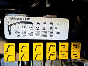 Passo 3690 - Cassone scarrabile m 5,00x2,55 - Gru scarrabile anno 2006 Hiab 099-B3 HiDuo/3 Sfili idraulici con Radiocomando - 3 Posti - Bloccaggio differenziale - Sospensioni pneumatiche integrali - Peso complessivo Q.li 135,00 - Portata utile Q.li 55,00.