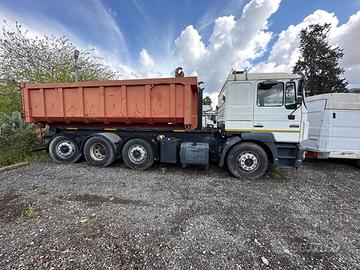 Autocarro in discrete condizioni Man 36-460 Cambio manuale Sospensione meccanica anteriore e posteriore 4 assi con assi sterzanti Meccanica discreta Carrozzeria ottima Allestimento Scarrabbile TAM T40 Adeguato in ADR con pinze di blocco posteriori e anteriori Misure casse da 5.50 a 6.50 Vendita con formula vista e piaciuta NB: senza cassa
