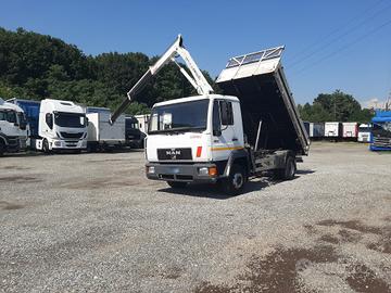 MAN B153 ANNO 1996 KM. 598000 CASSONE RIBALTABILE TRILATERALE, GRU BONFIGLIOLI P 5000, PORTATA KG. 4800.