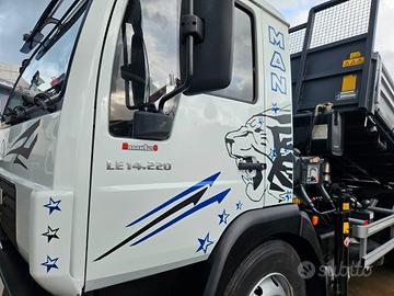MAN 140E22 GRU E RIBALTBILE TRILATERALE, CON VISIERA PARASOLE, MACCHINA PERFETTA, CON SPONDE IN ALLUMINIO RINFORZATE TR5.