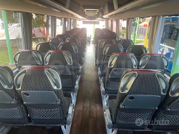 L'autobus ha la moquette in tutto il corridoio interno, è dotato di prese da 230V e precisiamo che l'esterno del veicolo è pellicolato, non verniciato.