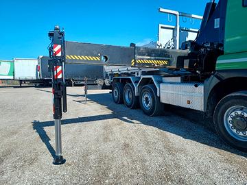 Anno 2013; KM 376500 Euro 5; Cilindrata 12500 cc; Potenza 397 KW; Peso a vuoto: 21000 kg; Portata: 11000 kg; Rimorchiabile fino a 8000 kg; Cambio automatico; Clima; Schermo touch screen; Radio CD; Volante multifunzione; 2 posti in cabina; Frigo; Vetri e specchi elettrici; Lampeggianti; Gru HIAB XS477 EP-5 HIDUO; Dettagli gru su foto allegata; Gru dotata di radiocomando; Ore gru: 3895; Stabilizzatori anteriori e posteriori extra estensibili; Stabilizzatori anteriori rotanti; Gru a riposo sopra cassone; Anno gru 2013; Ribaltabile trilaterale rinforzato; Sponde dotate di molle per facilitarne l'apertura/chiusura; Dimensioni carico utile (mt): 5.05X2.43X0.72; Veicolo accessoriato con molta cura; Gommato ottimo; Mezzo subito pronto ad operare.