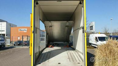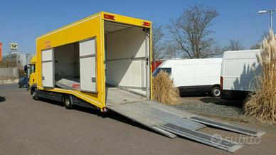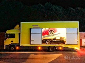 Vendesi bisarca chiusa man trasporto vetture per 2 auto euro 5, cambio automatico, 120 qli, gancio traino per carrello 35qli, cabina full optionals con letto e frigo, allestimento trasporto vetture totalmente in alluminio con sponda e pedana interna idraulica.