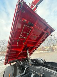 Allestimento: Cassone ribaltabile trilaterale con sponde rinforzate e pistone idraulico centrale di grande potenza e campana posteriore per rimorchio.