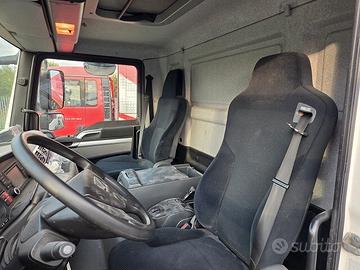Cat: Man TGM tre assi, carrellone con rampe, camion usato, autocarro usato, cassone con rampe, pianale con sbalzo posteriore inclinato e rampa idraulica.