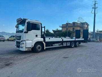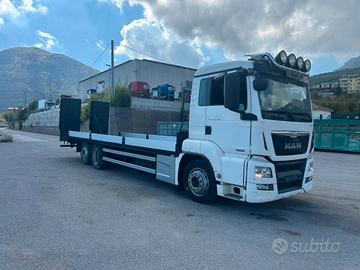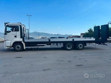DESCRIZIONE - autocarro in ottime condizioni generali, con pianale con rampe di carico metri 8,50, cambio automatico, Euro 6, 3 assi, 6x2, sospensioni full pneumatiche, bloccaggio differenziale