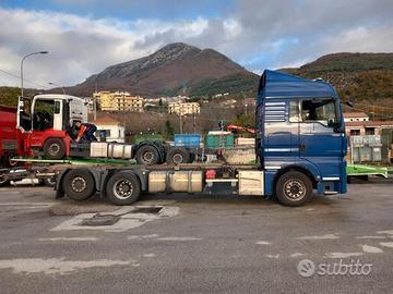 DESCRIZIONE - Autocarro in ottime condizioni generali, a telaio (possibilità di allestimento con pianale con rampe di carico nuovo), 3 assi, 6x2, 3° asse sterzante, Euro 6, cambio automatico, ABS, clima, retarder, sospensioni full pneumatiche