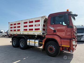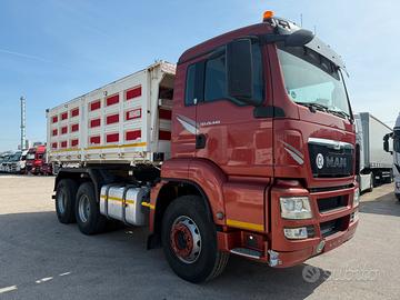 Man TGS 26.440, anno 2014, km 290000, cambio manuale, frigo in cabina, n' 10 pneumatici nuovi sez. 12 R 22,5, allestito con ribaltabile trilaterale marca OCM , ribaltabile con carrello e doppio pistone, veicolo tenuto in ottime condizioni...