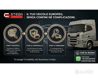 Ricerchiamo il tuo "nuovo" mezzo sui principali mercati Europei e ti aiutiamo ad acquistarlo, a finanziarlo e a targarlo, se necessario.