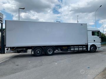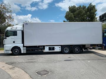 MAN TGX 26.400ANNO PRIMA IMMATRICOLAZIONE 2009EURO 5CASSA ISOTERMICA DI MARCA ISOKITCON GRUPPO FRIGO THERMO KING UTS TLEGE SPONDA RETRATTILE ANTEO DA 20 QUINTALILUNGHEZZA CASSA M 9,60LARGHEZZA M 2,60ALTEZZA M 2,80ATTESTAZIONE ATP IN CLASSE FNA CON SCADENZA SETTEMBRE 2028 (FNA 09-2028)PORTATA UTILE 129,30 QUINTALIKM 1.166.000CAMBIO MANUALE INTARDER
