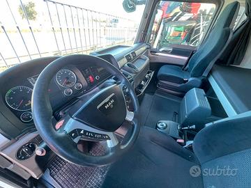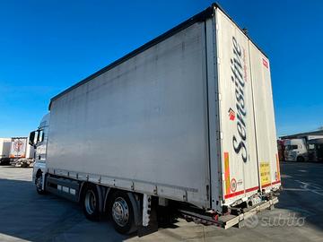 TGX 26,480 6x2, centinato mt. 7,80 sospensioni pneumatiche integrali, attacco biga, 315/60 frigorifero, 2 letti in cabina, cerchi in ferro, sponda Dhollandia 20 q.li, 2 serbatoi, telo bianco,