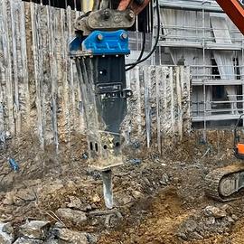 Martello demolitore prima linea, idonea per escavatore 140/170 q.li, peso martello 950kg, ecosilenziato monoblocco, completo di due punte, pressurizzato, produzione italiana, certificazione CE. La nostra linea comprende per escavatore benna, pinza, pedane e rampe da carico, trincia, martello demolitore, trivella idraulica, cingoli, fresa, ruota simex, demolitrice, frantumatrice, forche, fresa ceppi, battipalo, miscelatrice, spazzatrice, cesoia e selezionatrice