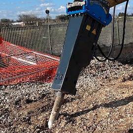 Martello demolitore SB300: costruito a monoblocco senza tiranti, kit recupero d'azoto, ecosilenziato, pressurizzato, forma affusolata per garantire un'ottima visibilità, e permette di operare vicino ai muri. Peso operativo 300kg, diametro utensile 75mm, portata olio richiesta 50-80l/min., numero colpi al minuto 800-1000 c/min., pressione d'esercizio 140bar, potenza colpo 1200j, ideale per miniescavatori da 45-75q.li. Completo di N.2 utensile. Manuale d'uso e manutenzione e certificazione CE. La nostra linea comprende per escavatore benna, pinza, pedane e rampe da carico, trincia, martello demolitore, trivella idraulica, cingoli, fresa, ruota simex, demolitrice, frantumatrice, forche, fresa ceppi, battipalo, miscelatrice, spazzatrice, cesoia e selezionatrice