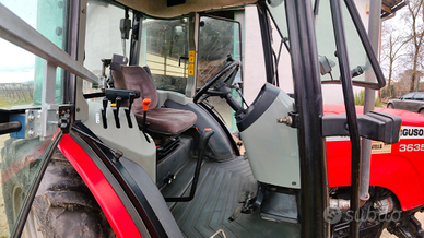 Trattore agricolo Massey Ferguson 3635, del 2008, 80 CV, 4960 ore, larghezza 180cm, 3 cilindri, passo 200cm, quindi più corto ed ampio angolo di sterzata infatti sempre usato in vigneto senza problemi. Inversore meccanico, aria condizionata, 3 distributori idraulici, 4 ruote motrici. Semplice e robusto, senza tanta elettronica.
