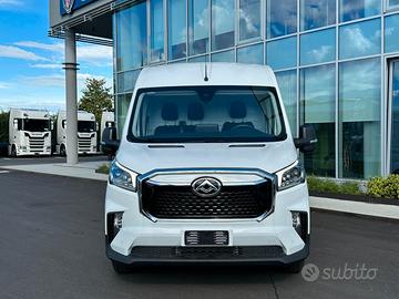Maxus eDELIVER 9 FURGONE 100% ELETTRICO, batteria di trazione da 72 KW, circa 290 km di autonomia nel percorso urbano (ciclo WLTP), portata utile di circa 1040 kg, dotato di cavi di ricarica domestica o da wallbox. Dotazione di serie: cerchi in lega da 16", sistema monitoraggio pressione pneumatici, ruotino di scorta, freni a disco anteriori e posteriori, porta scorrevole vano di carico lato passeggero, portiere posteriori apribili a 180° (versioni L2), retrovisori esterni regolabili elettricamente e riscaldabili, paraurti anteriore in tinta con la carrozzeria, paraurti posteriore nero, luci diurne a LED, fendinebbia anteriore e retronebbia, proiettori anteriori a LED con sensore luce, luci a LED per vano di carico, luci di lettura a LED, 3 sedili, sedili riscaldabili, airbags anteriori guidatore e passeggero, airbag laterali a tendina lato passeggero e guidatore, limitatore di velocità, ESP, EBA, BAS, HHC, cambio di corsia assistito (LCAS), sistema di rilevamento angolo cieco, sistema di regolazione automatica della velocità, sensori di parcheggio anteriori e posteriori, immobilizer system, freno di stazionamento manuale, E-Call (chiamata d'emergenza), modalità Eco Driving e Normal Driving, cruise control e computer di bordo, Keyless e partenza One Touch, climatizzatore manuale, presa USB anteriore, presa di corrente anteriore da 12v, DAB/MP5 con display da 10" touch screen, retrocamera, bluetooth con comandi al volante, Apple Car Play & QD Link, LoJack, presa di ricarica standard tipo 2 e veloce Combo CCS, cavo di ricarica da 6m (tipo 2, modello 3, 32A), sistema di ricarica veloce, frenata rigenerativa con 3 intensità, sistema di raffreddamento e/o riscaldamento della batteria.Garanzia e assistenza stradale sul veicolo: 3 anni / 100 000 km dall'immatricolazione.Garanzia sulla batteria di trazione: 8 anni / 160 000 km dall'immatricolazione.