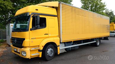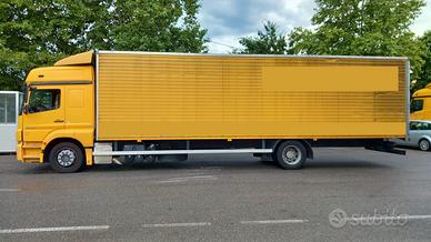Proponiamo in vendita Mercedes Benz Axor 1833 furgonato in ottime condizioni, massa complessiva a pieno carico 18T, 2 assi, passo 5700 mm, sospensioni pneumatiche, freni a disco, ABS, motore R6, LA, 240 KW (326 CV), Euro 4, cambio Telligent, freno motore con valvola a strozzamento, climatizzatore, Webasto.