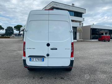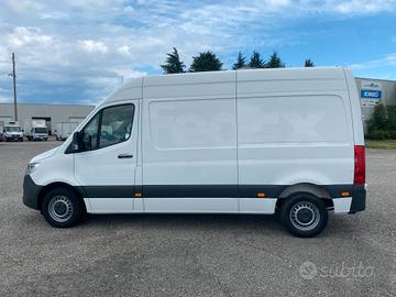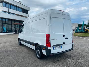 Mercedes Benz Sprinter L2H3, anno 2021, potenza 115 cv, cilndrata euro 6d-Temp, PTT 3.500 kg, 3 posti, autoradio digitale, pneumatici all season, vivavoce, volante multifunzione, clima, vano di carico rivestito, porte posteriori apribili a 180°, porta laterale destra scorrevole.
