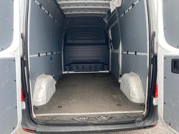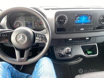 Mercedes Benz Sprinter L2H3, anno 2021, potenza 115 cv, cilndrata euro 6d-Temp, PTT 3.500 kg, 3 posti, autoradio digitale, pneumatici all season, vivavoce, volante multifunzione, clima, vano di carico rivestito, porte posteriori apribili a 180°, porta laterale destra scorrevole.