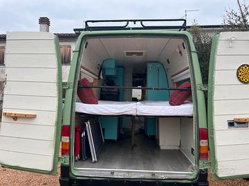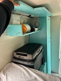 Allestimento interno rimovibile per tornare a uso furgone, resta solo la parete verticale della doccia