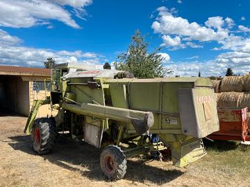Mietitrebbia autolivelante Claas Dominator 76, anno 1984, macchina completa di barra grano, barra con attrezzatura girasole e 2 carrelli portabarra.