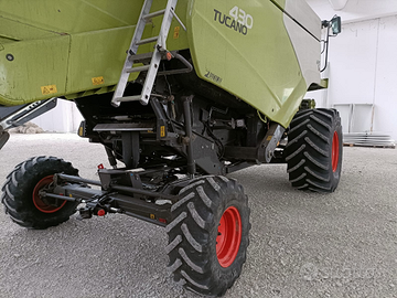 Vendo mietitrebbia Claas modello Tucano 430 montana 4 a carreggiata stretta con lama di taglio 610 con carrello Nardi a ralla girevole.Macchina anno 2014 con 3870 ore allestita con gomme 800, trinciapaglia,riduttore di velocità, accessori semi minuti,doppia trazione posteriore, macchina full optional. Vendo a 95000 €. Macchina molto bella, completamente revisionata. Astenersi perditempo.