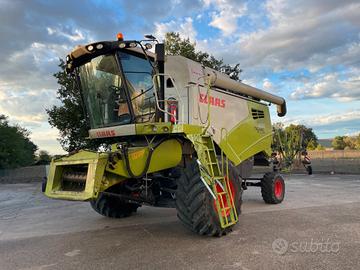 Mietitrebbia Claas Tucano 430 Montana 4, anno 2022, 750 ore di lavoro. Macchina autolivellante completa di crivelli elettrici, doppia trazione, autocontour, quantimetro, impianto ingrassaggio automatico, sistema di crivellazione a turbine, radio con bluetooth, telecamera posteriore, allestimento massimo dei fari di lavoro, pneumatici 800/65 R32. Barra grano Claas Cerio 620.