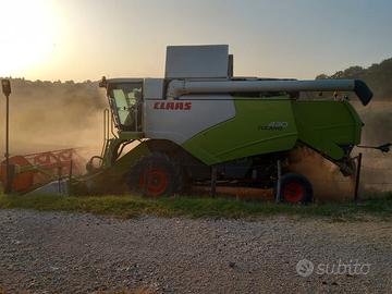 Mietitrebbia Claas Tucano 430 Montana 4, anno 2017, ore motore 3000, ore lavoro 1600. Macchina completa di trinciapaglia, auto contour, crivelli elettrici, compressore aria, pneumatici 800, doppia trazione, inversore idraulico canale, barra 6 metri con carrello con ralla.