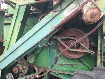 Mietitrebbia d'epoca john deere 952 completa di barra per grano che è stata rifatta e non utilizzata. Macchina con libretto e targa originali intera per pezzi di ricambio o come base per un restauro completo perché non presenta gravi ammaccature .Non funzionante da rifare il motore,organi di trasmissione e riduttore buono,massa trebbiante e battitore buono,sollevatore posteriore buono.Wostapp 3341028232. Collezionismo privato. VENDUTA.
