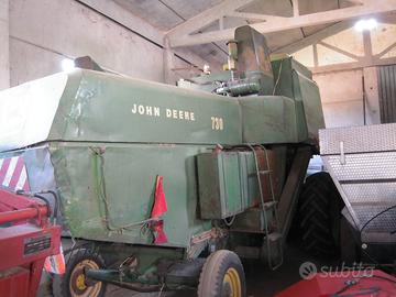 Mietitrebbia John Deere 730 da pianura costruzione anno 1970 Germania , con cabina aria condizionata , barra da grano mt. 4,20 di ingombro , taglio 3,80 oltre alla macchina nel prezzo è compreso una gran quantità di ricambi alcuni nuovi e molti usati , compreso gomme e cerchi posteriori di scorta . pronta all'uso